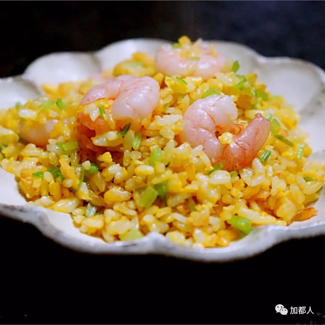 大虾对剖,去壳。油锅烧温,加入大虾煎熟起圈后,放少许蒜蓉蚝油炒香,下米饭、鸡蛋、木耳丁、豌豆、胡萝卜丁,有什么放什么,五颜六色就行。家里正好没有豌豆,木耳也没有泡发,就拿了一块照烧豆干切成丁,味道也不错。有时候记起来,也会放一些鱼籽,好吃又营养。虾遇热卷成一圈圈螺旋状,孩子说是跳舞虾,认真一看,还真形似…