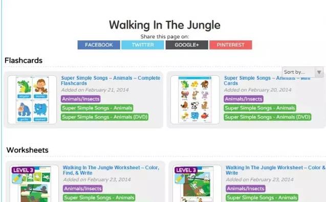 Super Simple Learning这个网站做得很用心。该团队注意到即使最基本的传统儿童对于儿童来说歌曲太快、歌词太复杂,于是该团队就自己录制儿童和编写歌词,通过简单的手势轻松教学,让孩子们找到可以接受的学习乐趣。歌曲质量出色,还有配套Flash Cards、涂色纸、活动建议等学习资源。