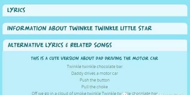 这些歌曲还会进行一个分类,例如文化的、节日的、交通工具……点击歌名进入歌曲页面,除了音频、视频之外,网站细心列出了歌词、歌曲背后的故事和这首歌的不同版本,实用又涨知识。