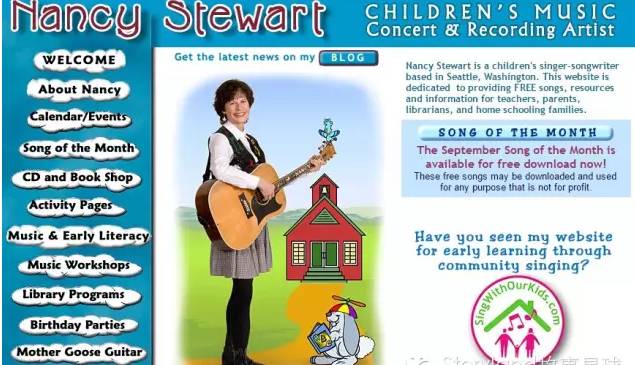 原创英文儿歌网站,建立者是热爱孩子的音乐人Nancy Stewart,她在这里慷慨地提供歌曲音频下载,还有歌谱、活动建议等配套资源。如果想为孩子寻找不那么“耳熟能详”的原创歌曲,这个网站是不错的选择,艺术家的自弹自唱,听起来特别温暖。