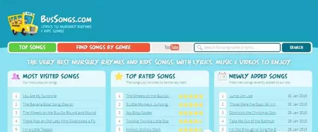 这个网站收集了2000多首英文儿歌,做了很清晰的分类,也能看到孩子和家长们的评价和反馈。“Top Songs”中的歌曲特别值得收听。