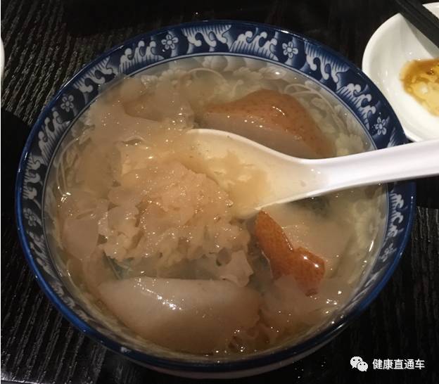 「巷子」的「小吊梨汤」用雪花梨,银耳,话梅煲成。汤汁呈漂亮的琥珀色,酸甜适口,浓稠却不过分粘腻,喝下去,一直滋润到肺。