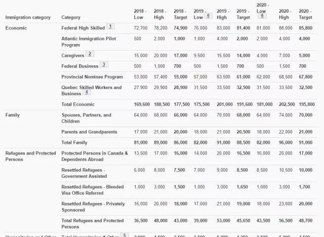 这里需要科普一下,这里的移民配额,是指加拿大计划接收的经济类移民、家庭团聚类移民以及难民的总和。而我们绝大多数所关心的,是经济类移民,其实是团聚移民。