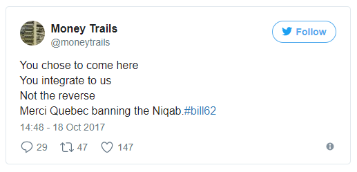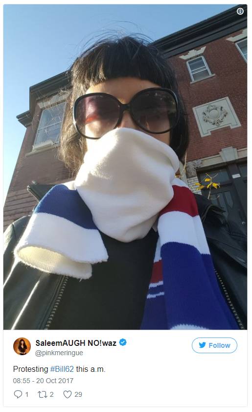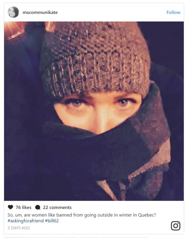 自本周三“面纱禁令” Bill-62在魁北克以66票支持、51票反对通过后,魁省穆斯林、非穆斯林一下子炸开了锅,两大阵营辩论不休。