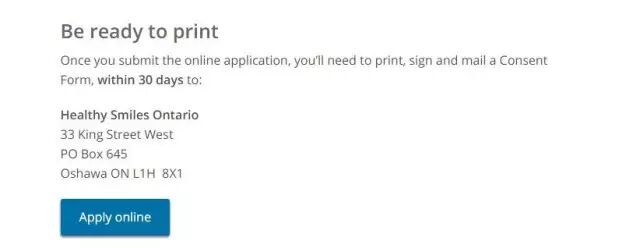 上政府官网:https://www.ontario.ca/page/get-dental-care,直接在线申请,然后把申请表和一份同意书都打印出来签字,在申请日之后30天内寄到: