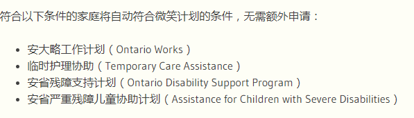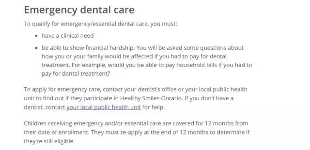 -家庭净收入低于2.2万元,且没有别的牙齿保健途径(包括其他政府资助的项目,如Ontario Works)