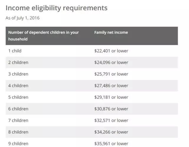 可以享受这个计划的家庭收入要求: