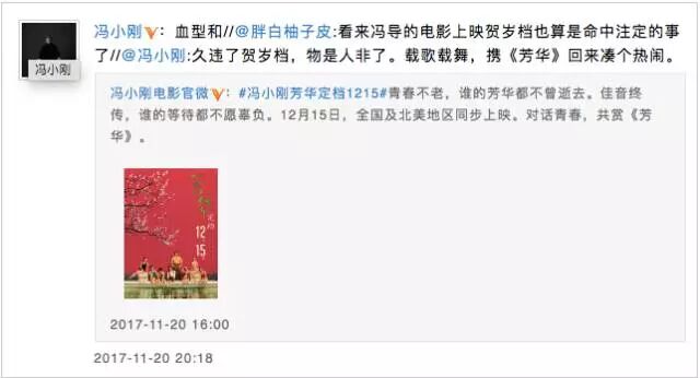 此次宣布再次定档“贺岁档”,网友笑称冯导还是逃不过“贺岁档”。