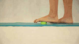 常年腰酸背痛的朋友,可以将网球或高尔夫球放在脚底,用脚趾和足跟缓慢滚两三分钟即可。