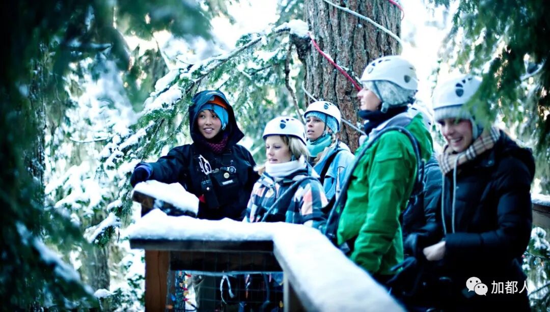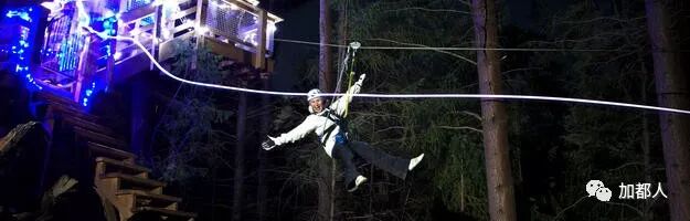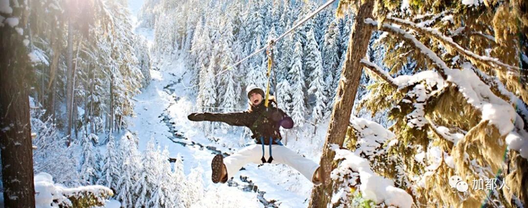 在夏季,加拿大流行的户外玩法少不了Tree-top Trekking和Ziplining – 树顶徒步探险和滑钢索。而在冬天,户外滑索饱览冰原雪景、俯瞰北国风光就更有加拿大特色了——