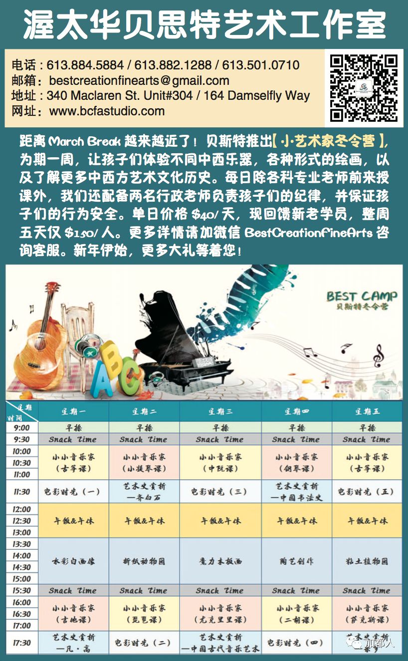 距离March Break越来越近,贝思特艺术工作室(Best Creation Fine Arts Studio)现推出小艺术家春令营,为期一周,您的孩子将能学习和体验演奏不同的中西乐器、各种形式的美术绘画以及了解更多的中西方艺术历史。每日,除了各科专业艺术老师前来授课之外,本工作室也同时配备了两名行政老师负责孩子们的纪录,确保孩子们有个有趣又安全的春假!