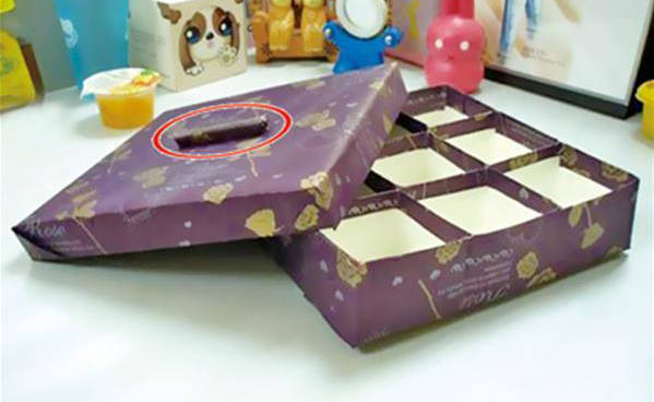 用你做盖子剩下的卡纸剪成你所想要的把手的宽度,然后按宽度卷成卷~~如果你要小卷中间穿细铁丝就可以卷完后穿过去;如果没有铁丝用结实一点的绳子也可以的,但记住如果用绳子那么最好把绳子直接卷在里面,两头留出适当长度,用来使把手固定在盒盖上面~